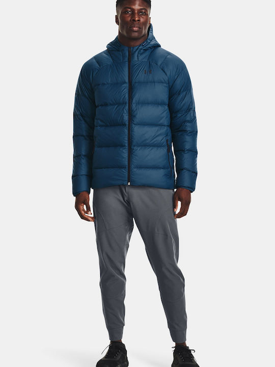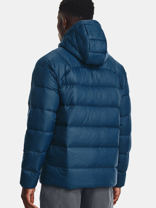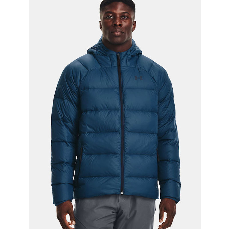 Ανδρικό μπουφάν puffer της εταιρίας Under Armour σε μπλε χρώμα. Κατασκευασμένο από ειδικό υλικό που αντέχει στη βροχή. Με εσωτερική επένδυση από πούπουλα για περισσότερη ζέστη. Διαθέτει κουκούλα για περισσότερη προστασία. Ιδανικό για τους χειμερινούς μήνες.